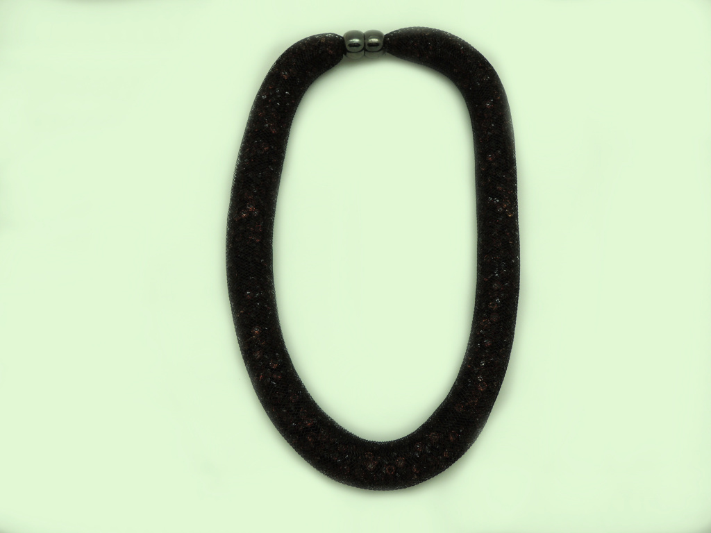 Náhrdelník plněný skleněnými korálky s magnetickým zapínáním.