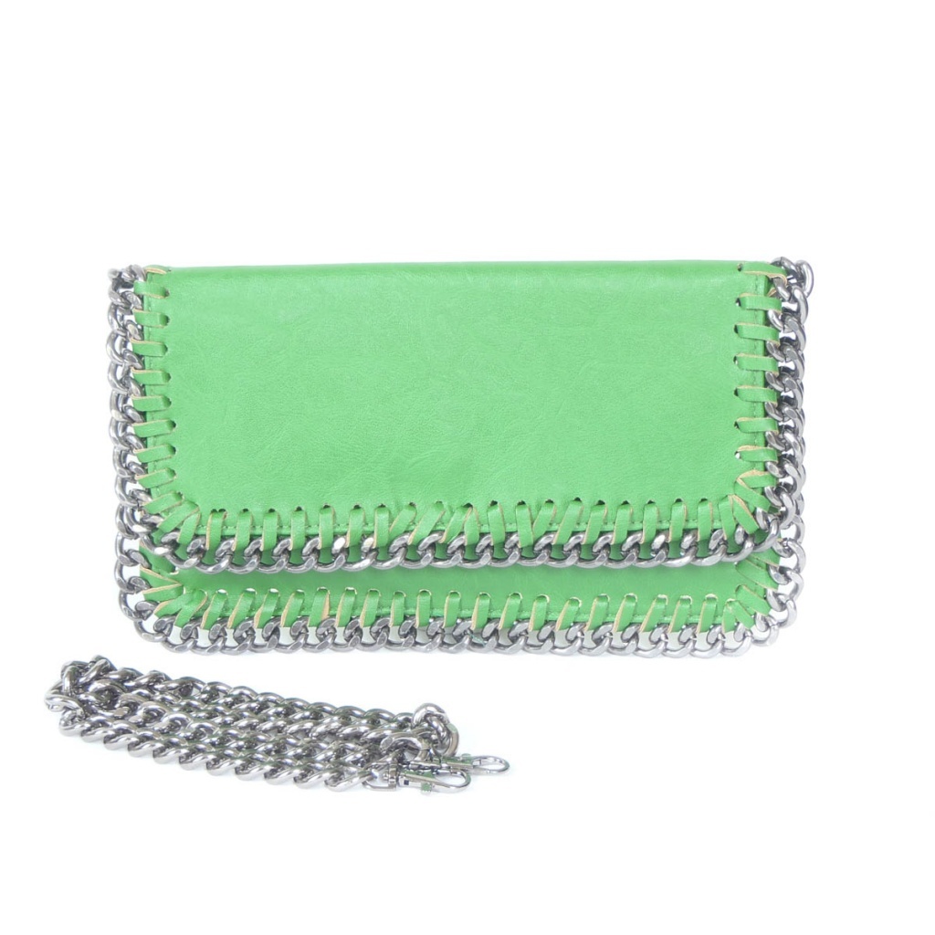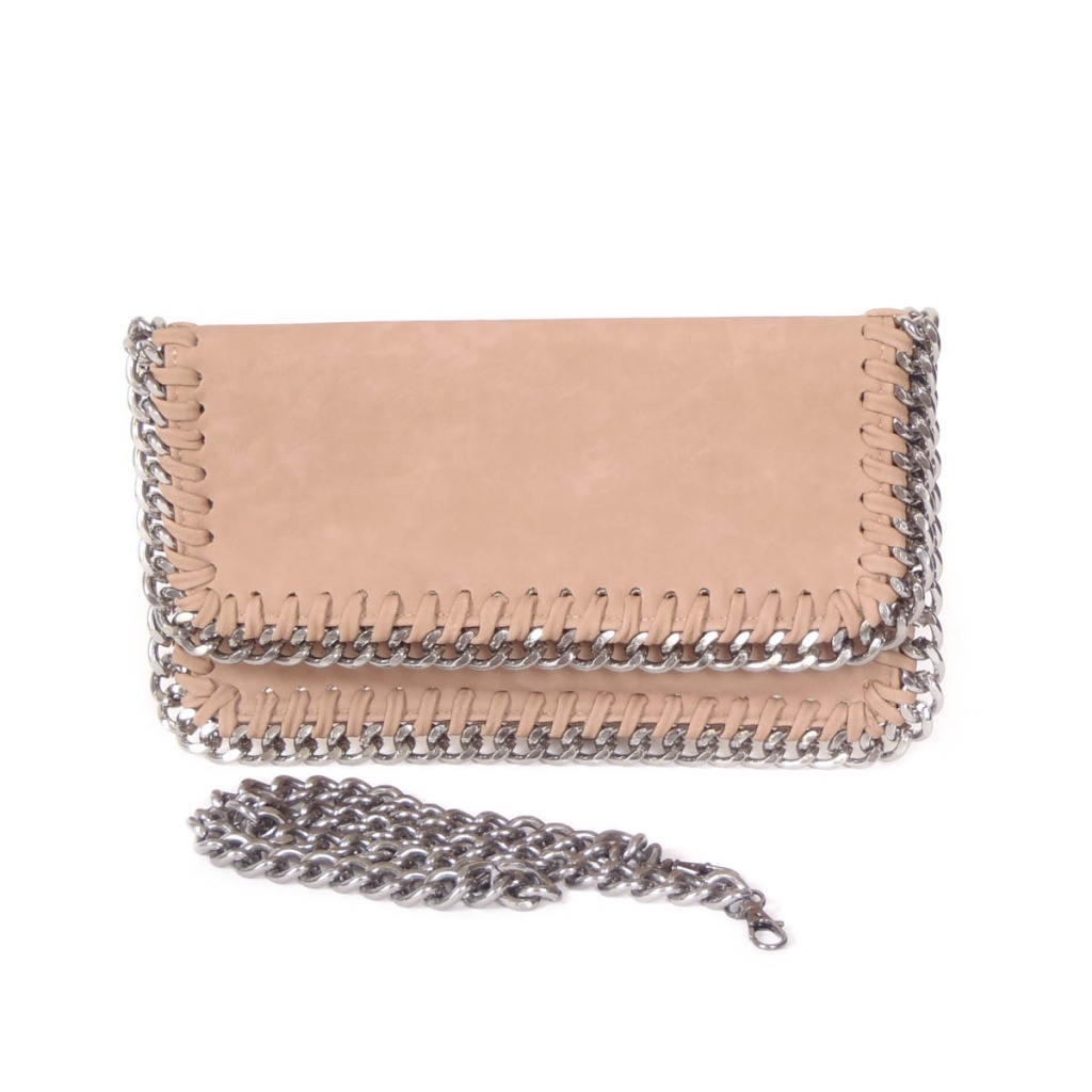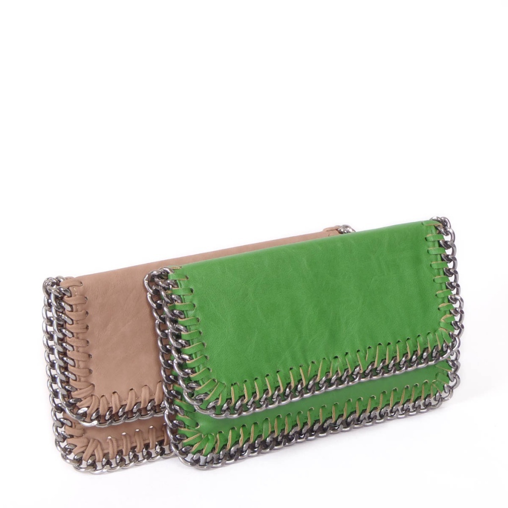 Kabelka lemovaná stříbrným řetízkem. Model je ze syntetické kůže,podšívkovaný 100%PES. Kabelka má připínací řetízek o délce 70 cm.