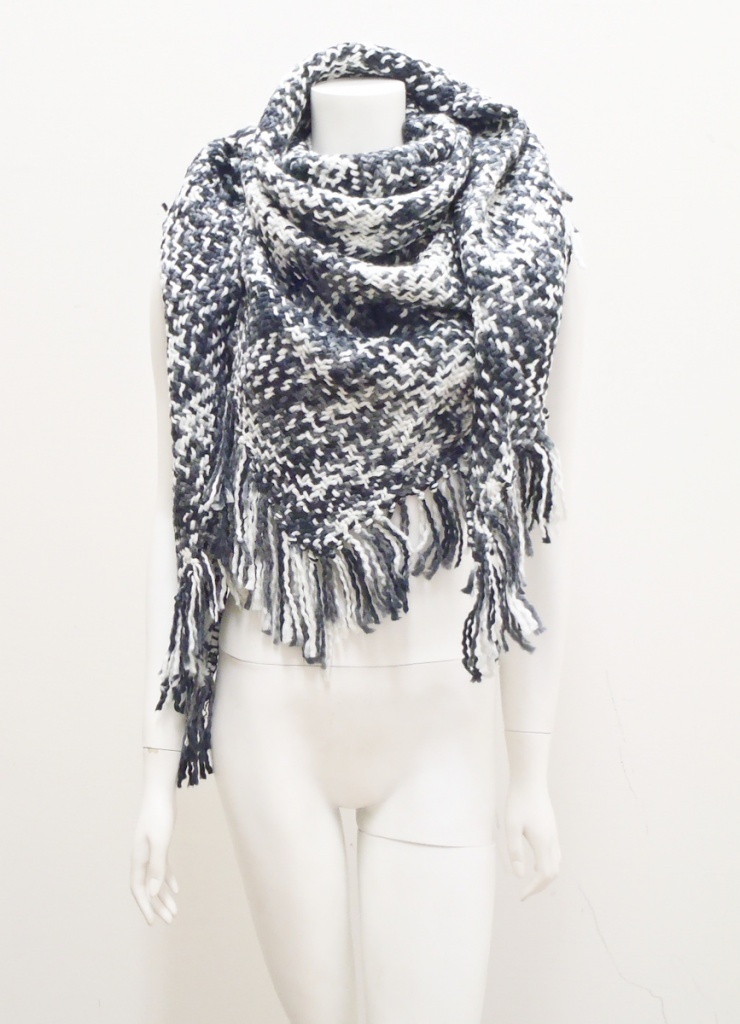 Šál ve tvaru trojúhelníku s třásněmi na koncích. Velmi hřejí díky velkému podílu vlny ve složení.