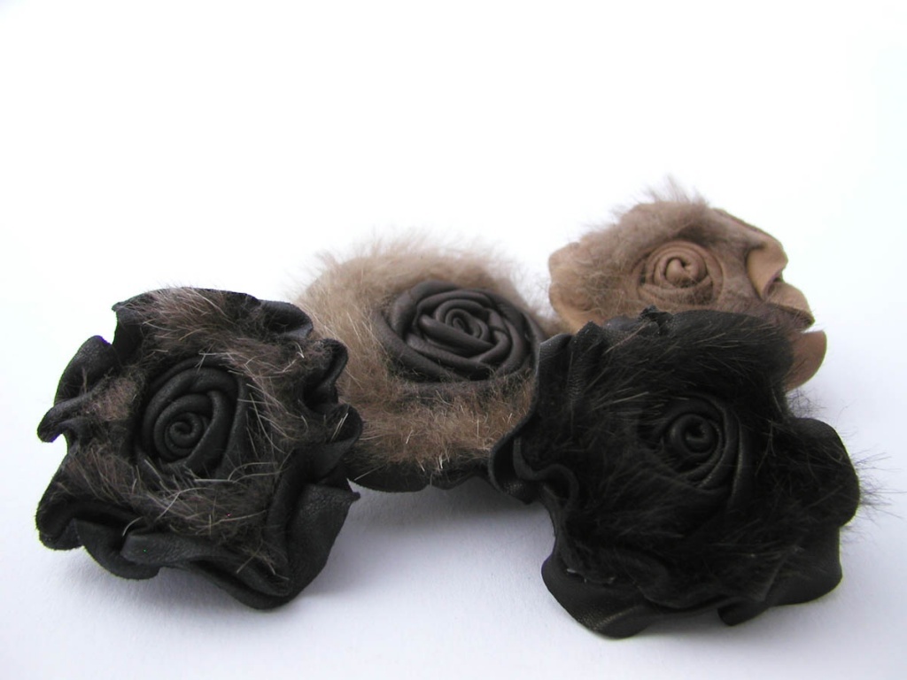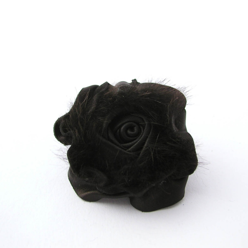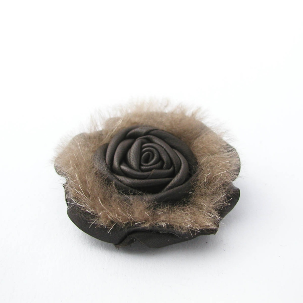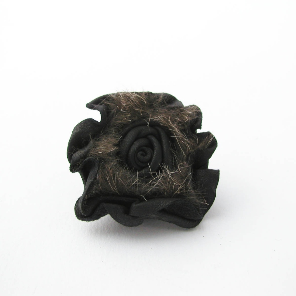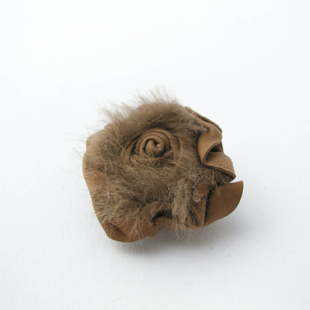 Brož ve tvaru růže, vyrobená z kůže.