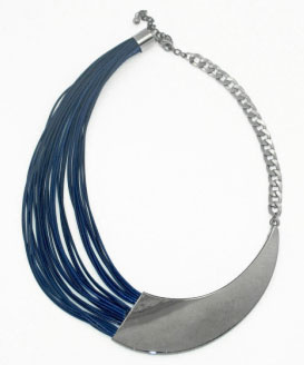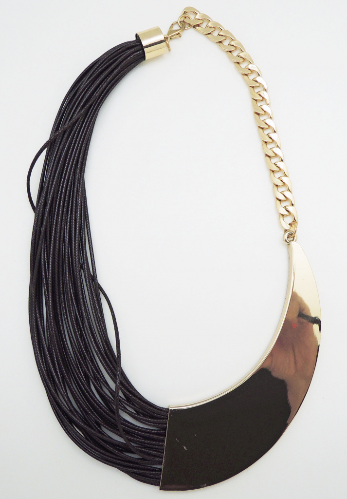 Náhrdelník tvořený z části textilními šňůrkami z části kovovými komponenty
