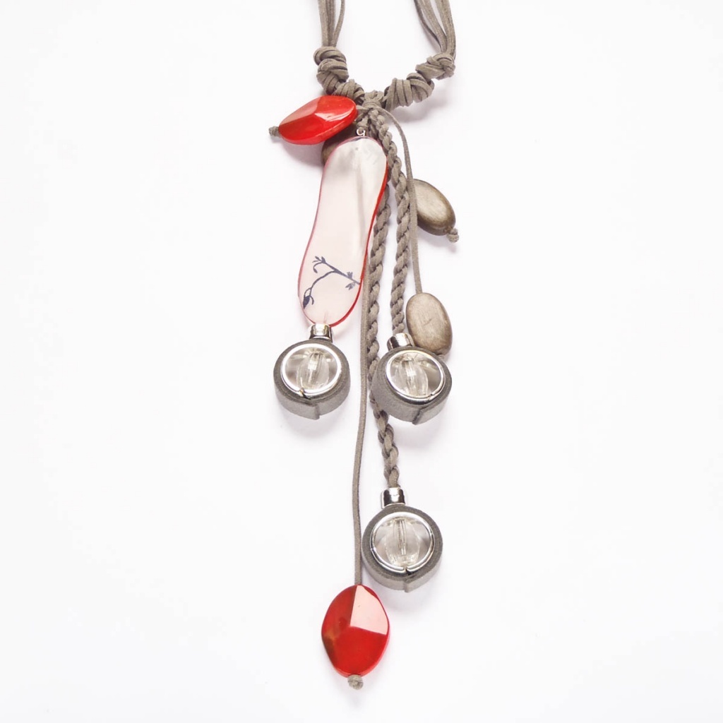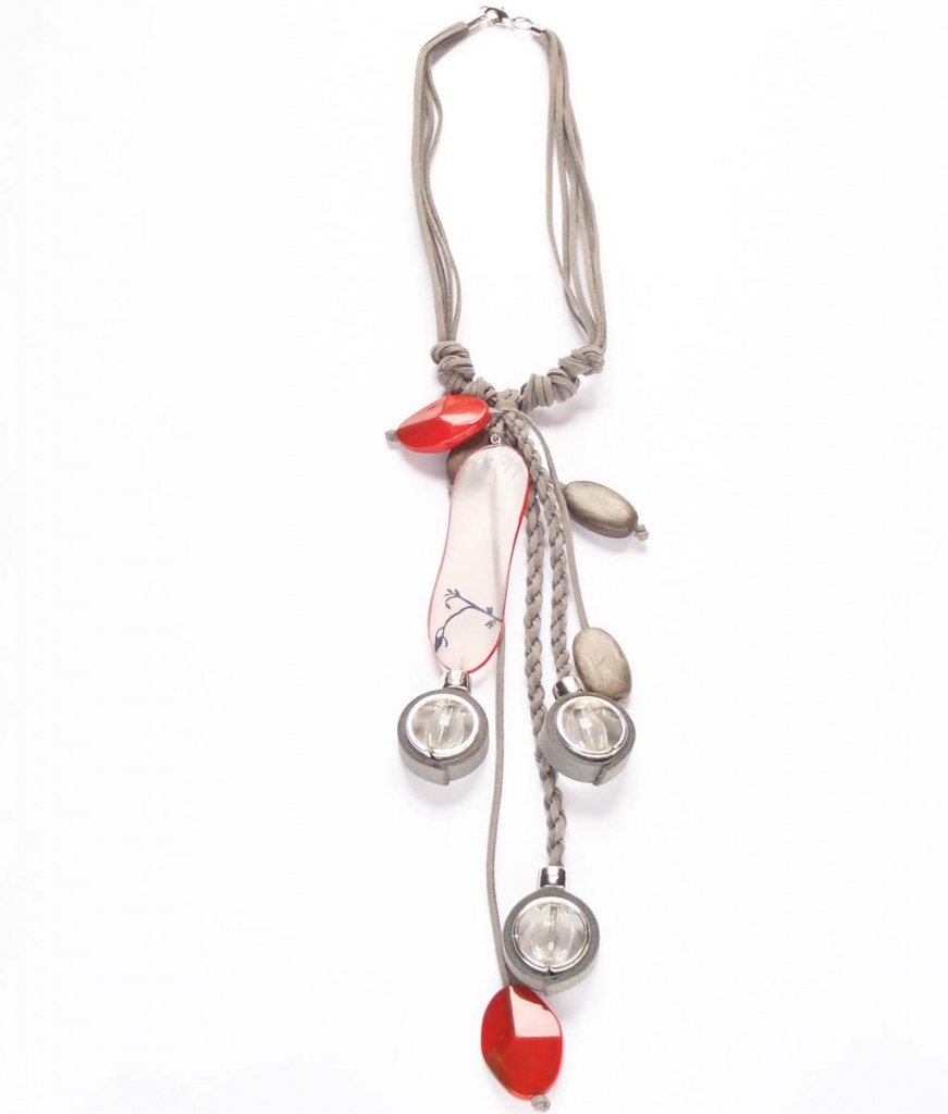 Náhrdelník z tištěnými přívěšky, dřevěnými korálky.