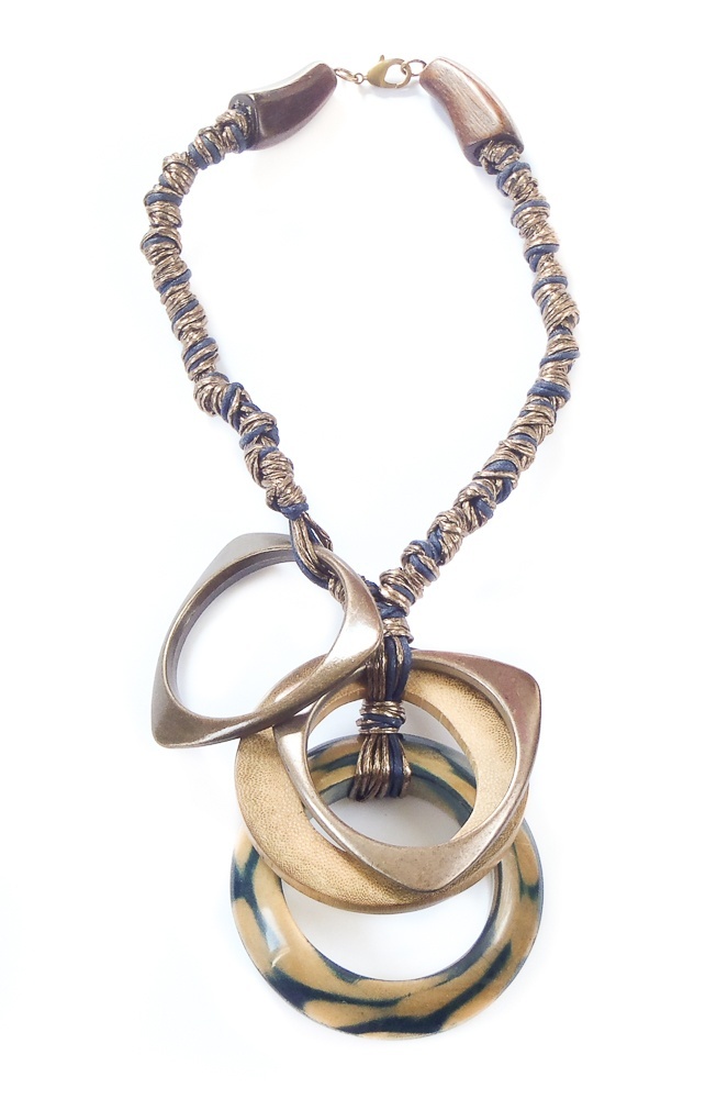 Náhrdelník z bambusu,bižuterního kovu a pryskyřice.
