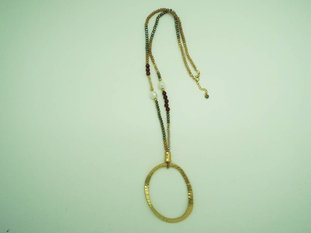 Náhrdelník ze skleněných korálků s kovovým komponentem a říčními perlami