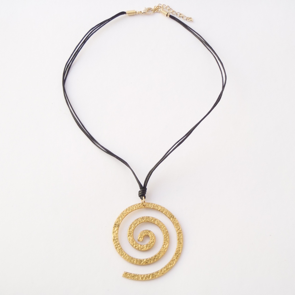 Náhrdelník s přívěškem z bižuterního kovu o velikosti 5x6 cm. Přívěšek je zavěšený na povoskované tkanici.