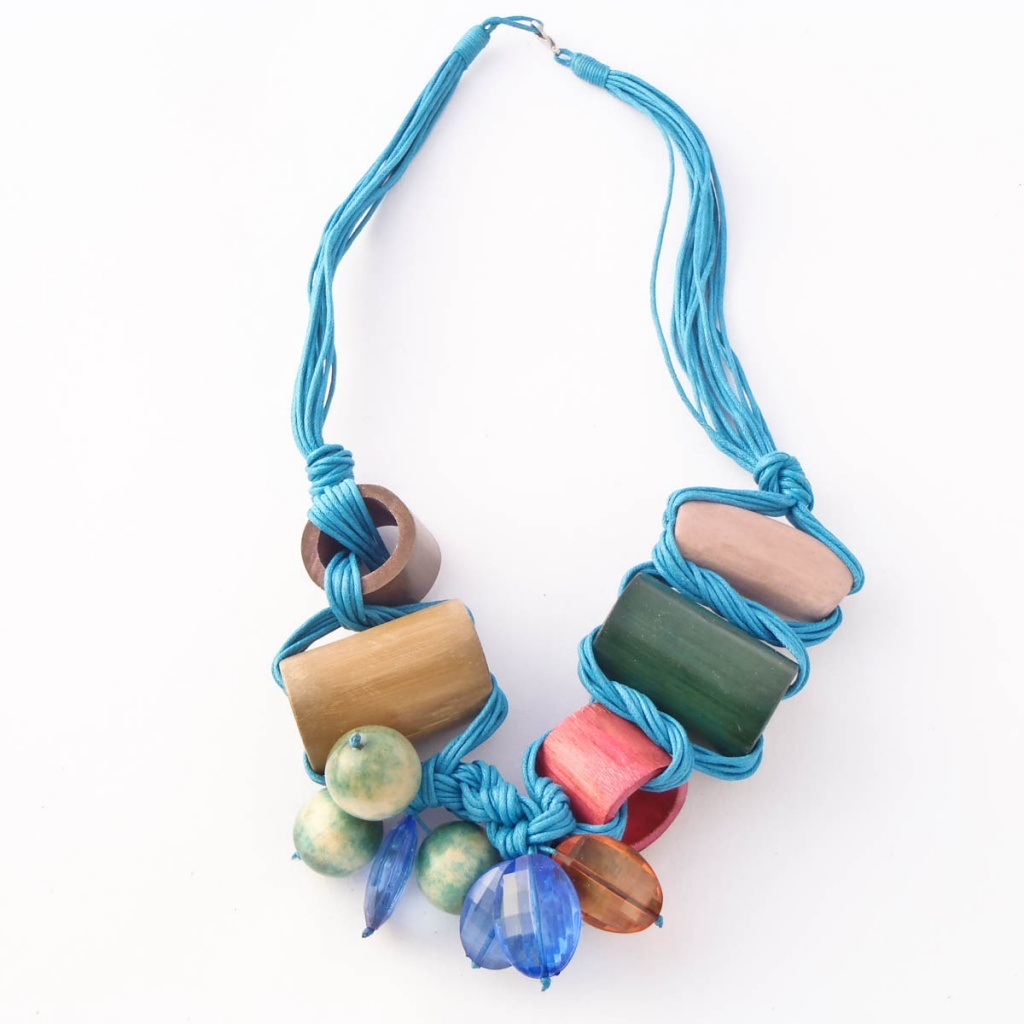 Náhrdelník z bambusu,dřevěných kuliček a povoskované šňůrky.