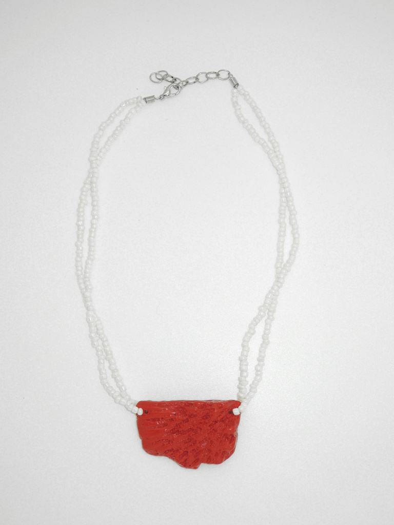 Náhrdelník z bílých skleněných korálků s červeným korálem