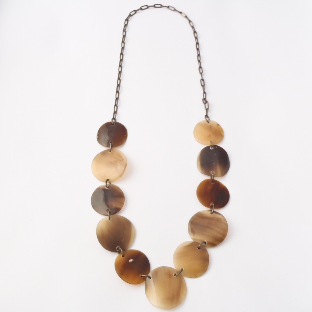 Náhrdelník z rohoviny a bižuterního kovu.