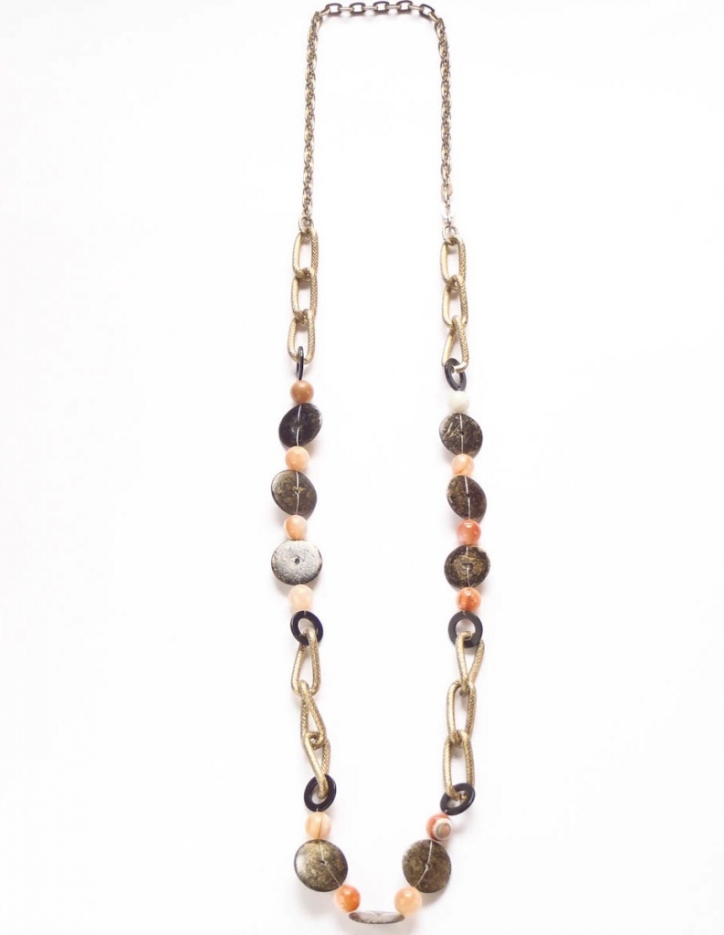 Náhrdelník z bižuterního kovu, kokosu a polodrahokamu karneol.