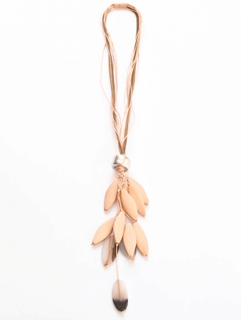Náhrdelník z dřevěných komponentů na voskované šňůrce.