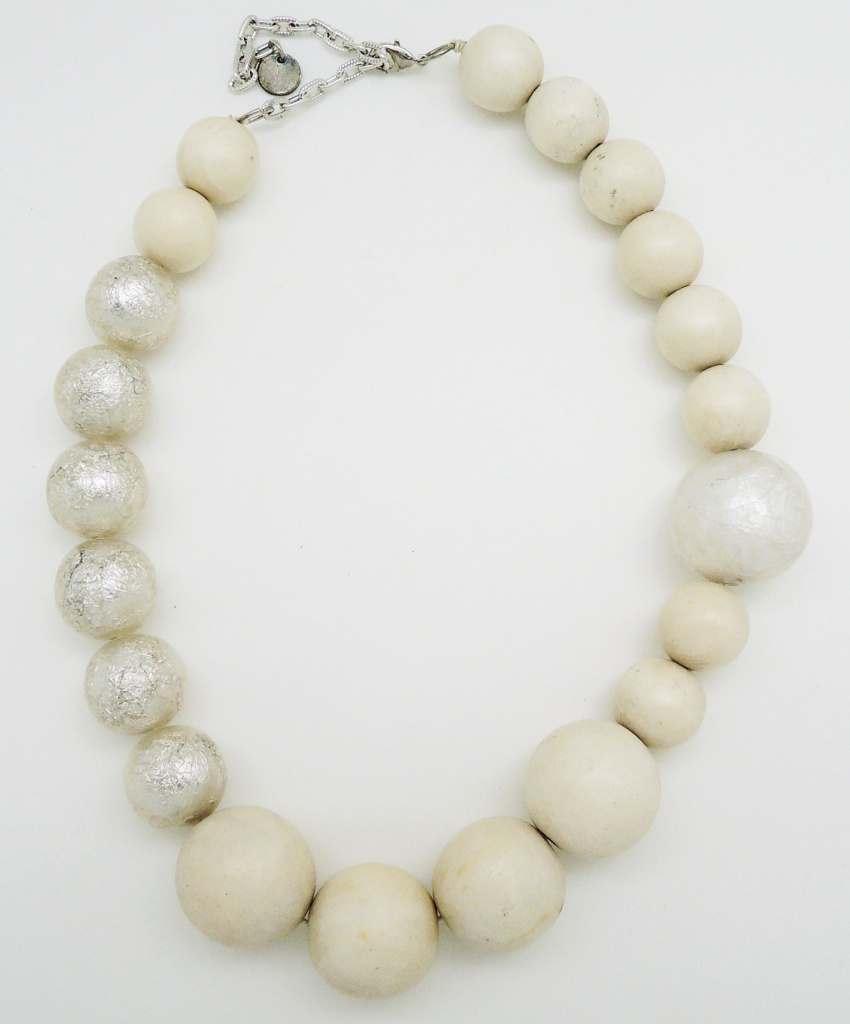 Náhrdelník z dřevěných komponentů.