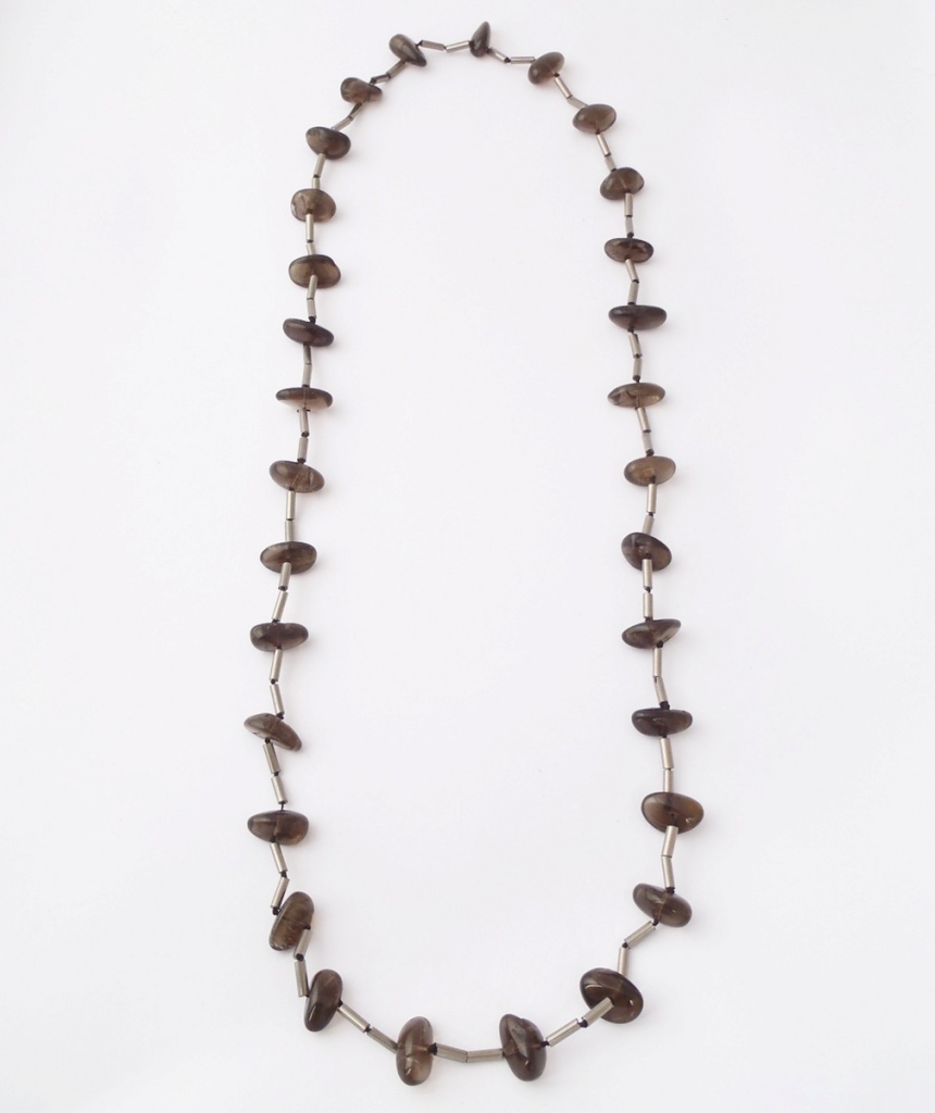 Náhrdelník ze skleněných tyčinek a kamínků.