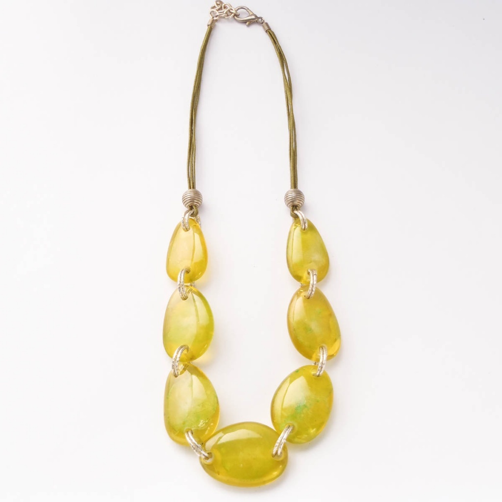 Náhrdelník s přívěšky z pryskyřice se zalitou rybí šupinou. Tři barevné varianty.