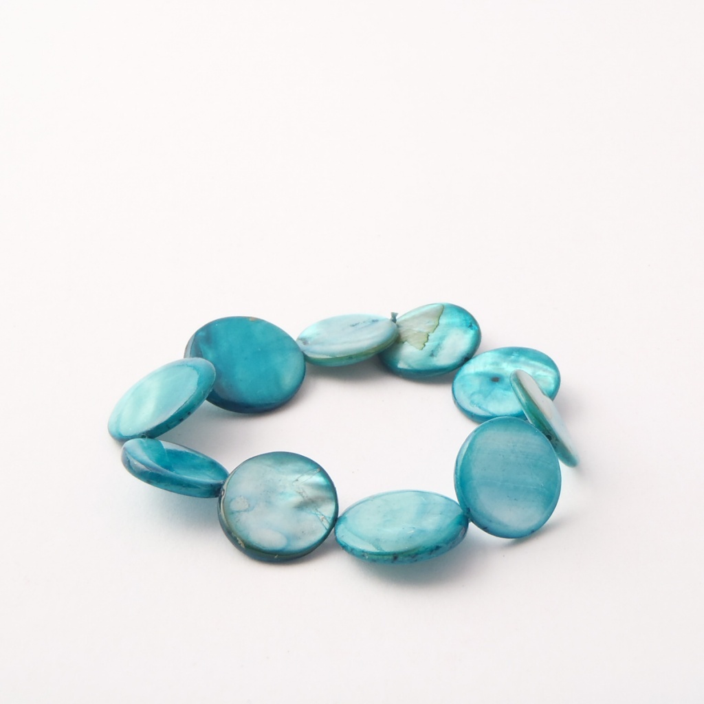 Náramek z perleti navléknutý na gumičce.