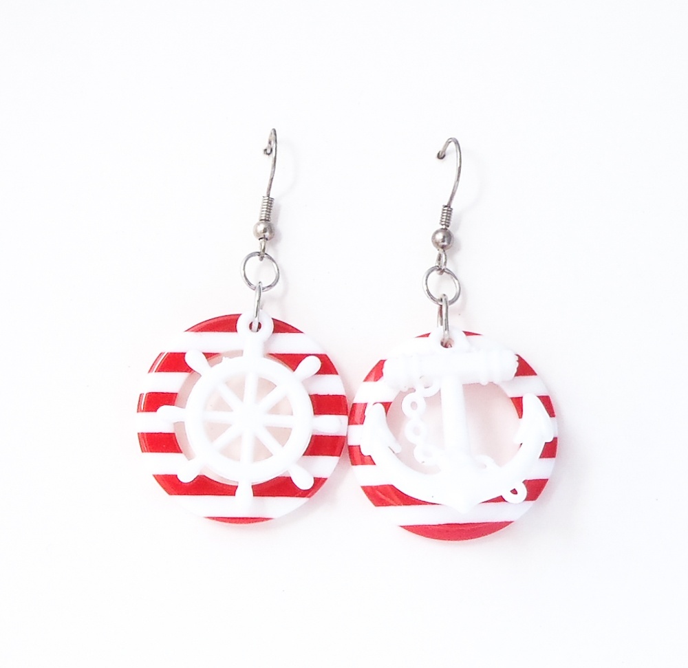 Náušnice s kotvou a kormidlem.
