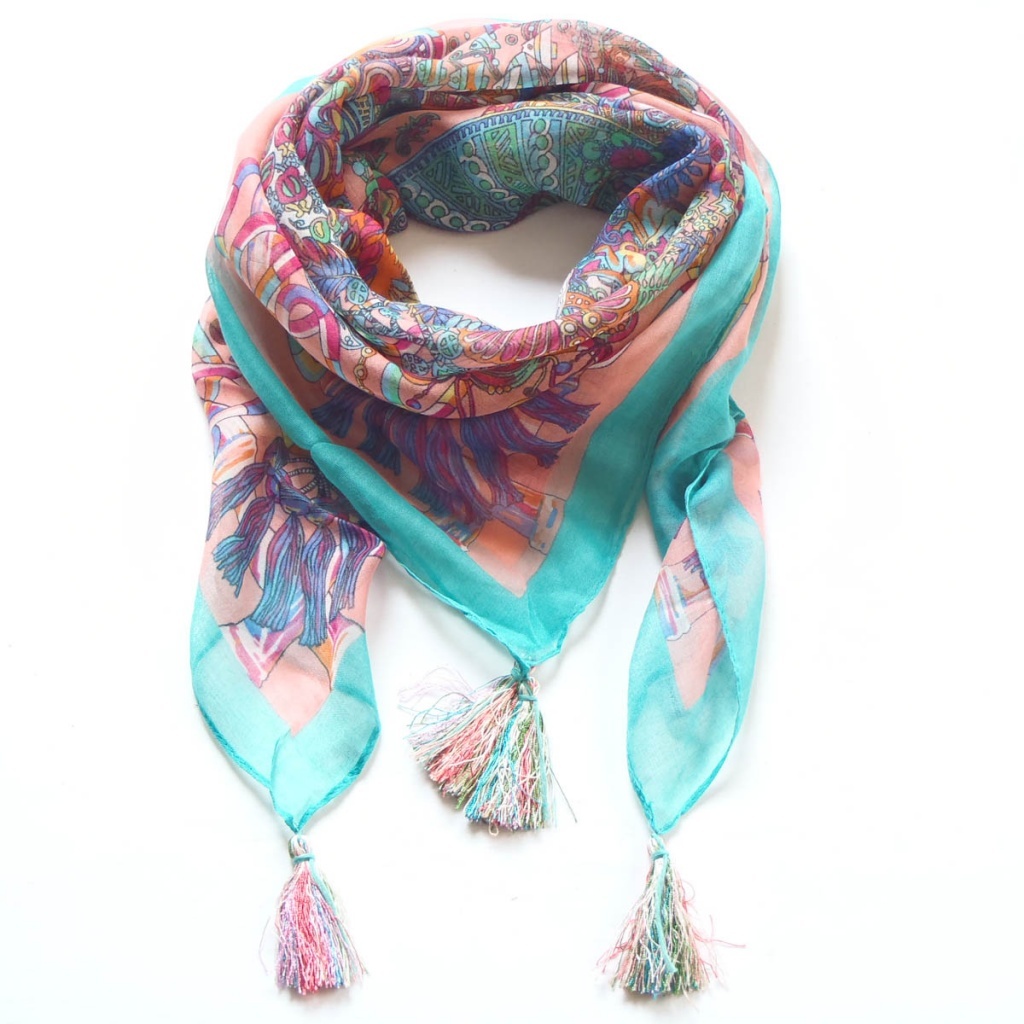 Šátek- sv.modrá/lososová