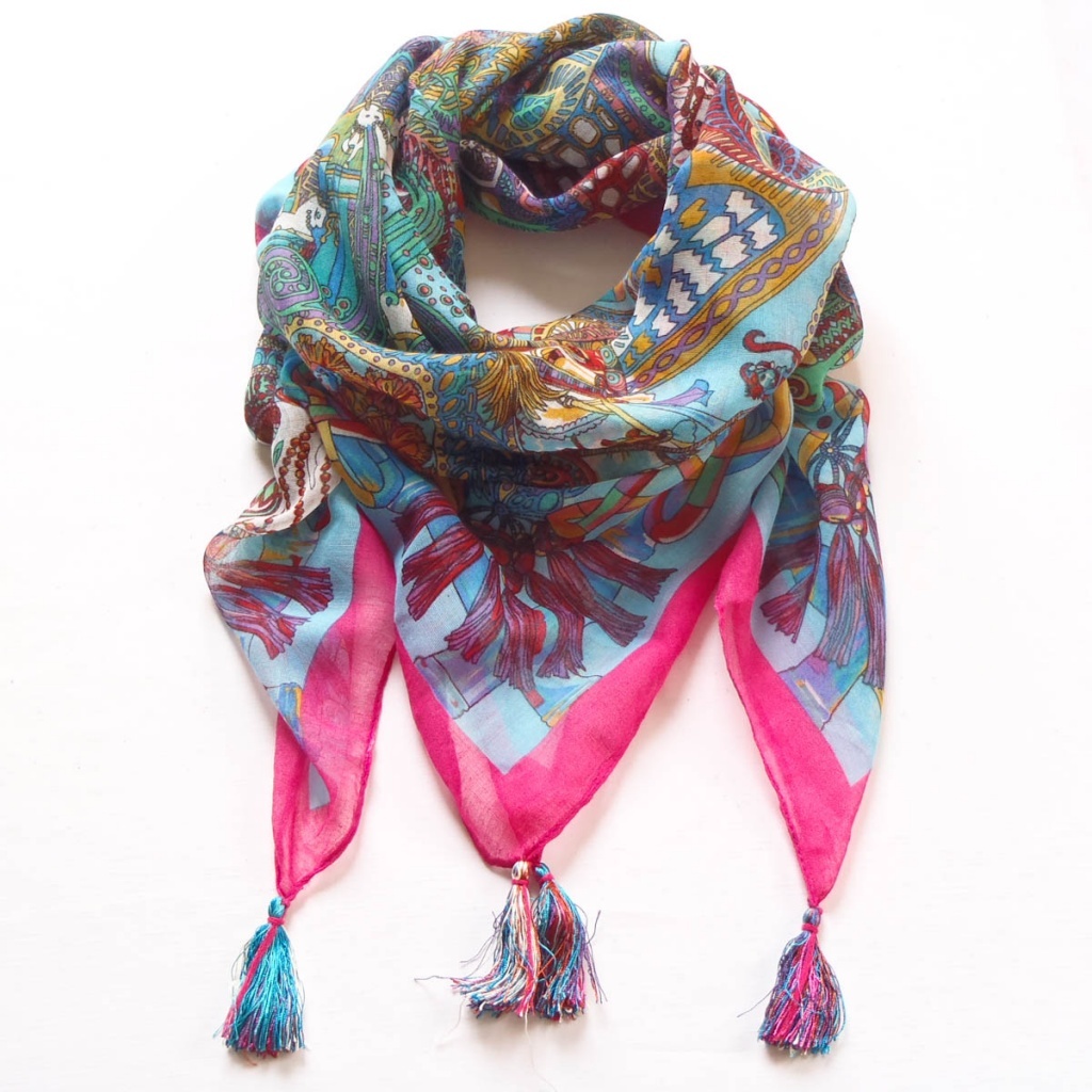 Šátek- modrá/fuchsiová