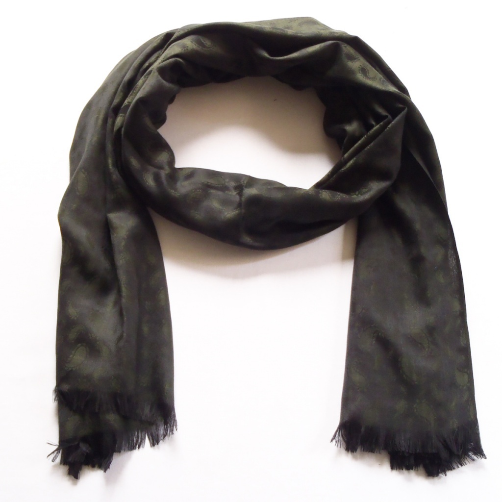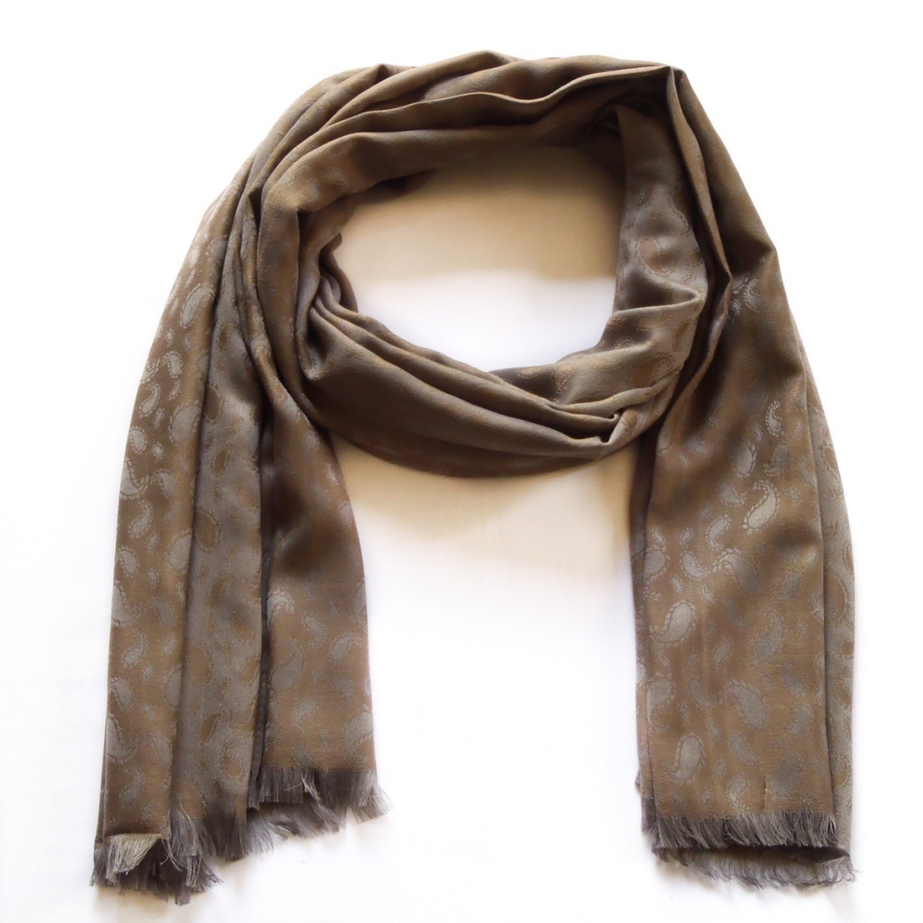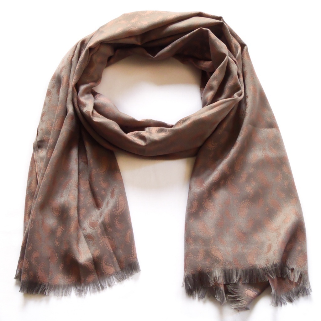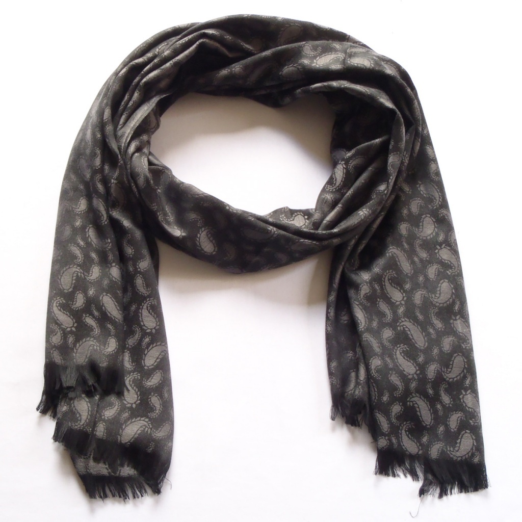 Šál v atlasové vazbě se vzorem paisley.