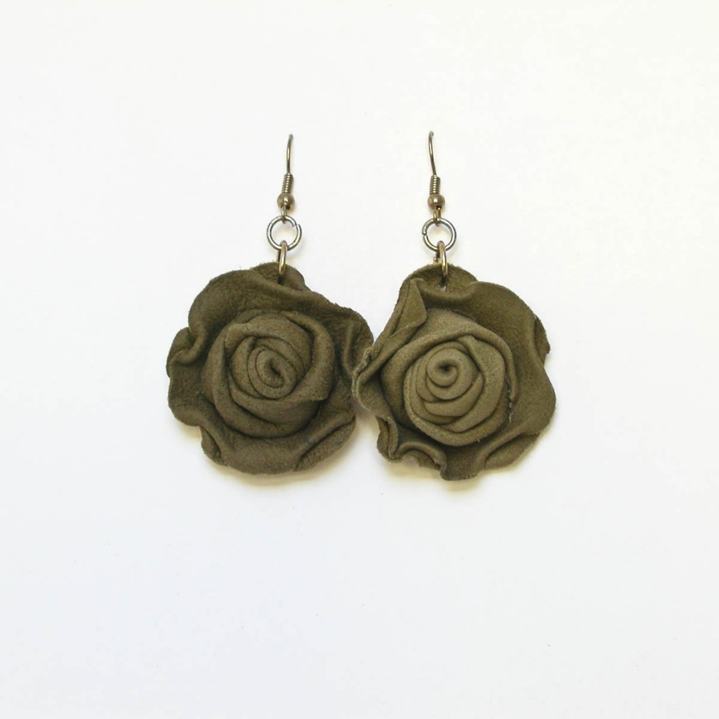 Náušnice ve tvaru růže, vyrobené ze syntetické kůže.